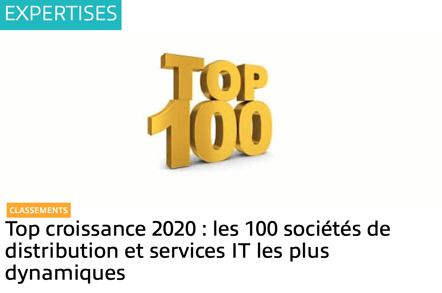Dans le Top croissance 2020 : les 100 sociétés de distribution et services IT les plus dynamiques.